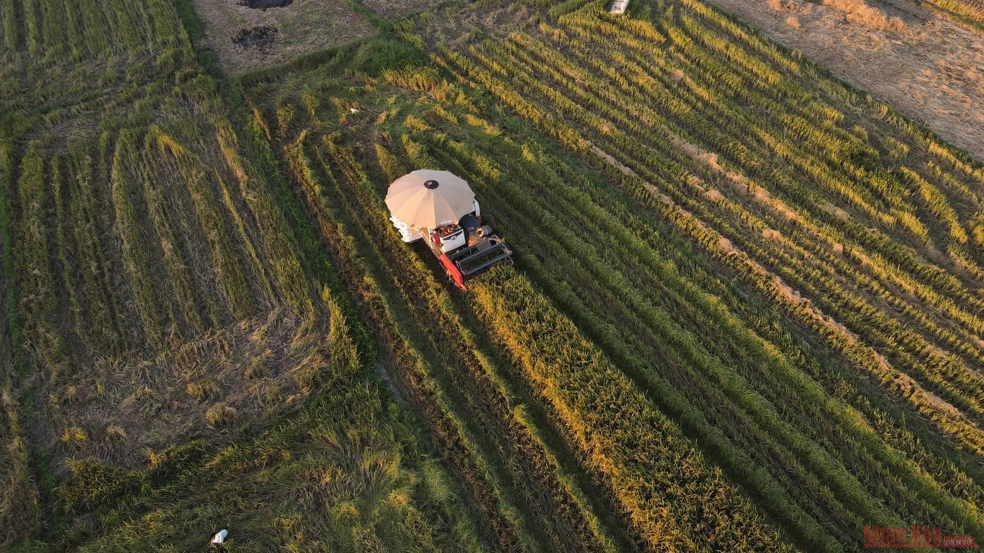In recent years, technology in farming has been boosted, and machines have gradually replaced humans. Many types of combine harvesters have been put into operation in rice fields, contributing to helping farmers in their farm work.