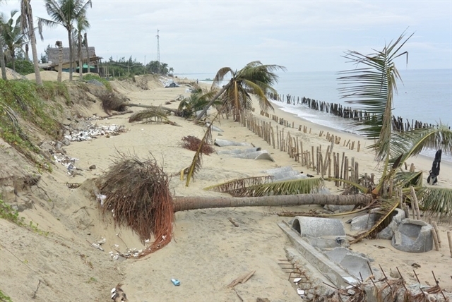 Over the past ten years, Cửa Đại Beach in Hội An Town of Quảng Nam Province has become a place that suffers from the severe impacts of climate change and rising sea levels, with landslides going deeper and deeper into the mainland.