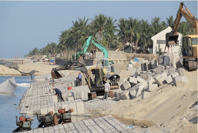 From 2010 to 2015, the province invested in building reinforced concrete embankments with inclined roofs 850m long, soft embankments with geotextile bags over 415 metres of the at risk coastline and geotube fabric bags along a kilometre of the rest, in projects costing more than VNĐ140 billion (US$5.5 million).