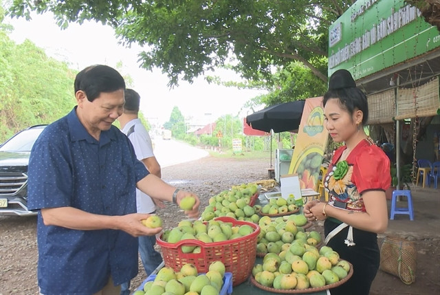 | FEELING FRUITY: A tourist buys mangoes, an OCOP item of Sơn La. VNS Photo |
