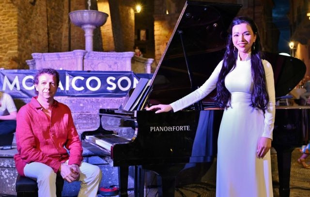 | Hiền Nguyễn and Italian music professor Gianni Kriscak, who has been by her side to accompany her on piano during the concert La Passione in both Việt Nam and Italy. |