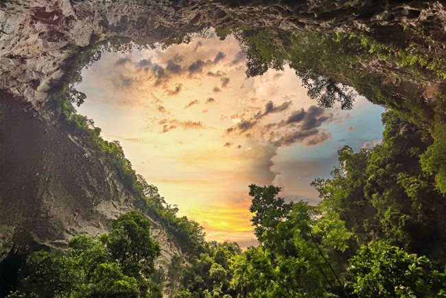 The park is home to million-year-old limestone mountains. Gradual subsidence has made giant holes which are now habitats for tropical vegetation.