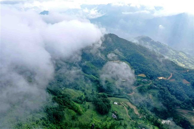 Mountains are half hidden in white clouds in Cao Bang’s Hoa An Commune