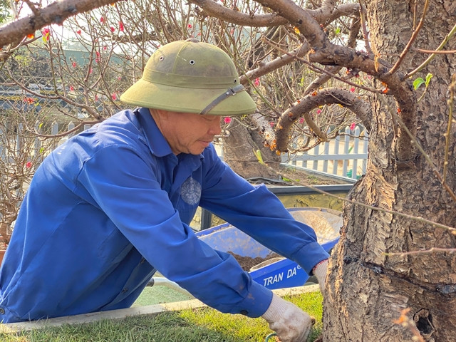 “I have been working here for several years,” he told Việt Nam News. “From my experience, I see the weather this year is normal, which is favourable to raising peach blossoms.”