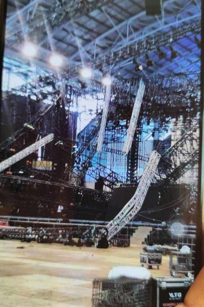 On the evening of September 28, news spread on social media that part of the stage structure at Phu Tho Sports Center in HCM City, the planned venue for two important rounds of the competition, had collapsed during construction.