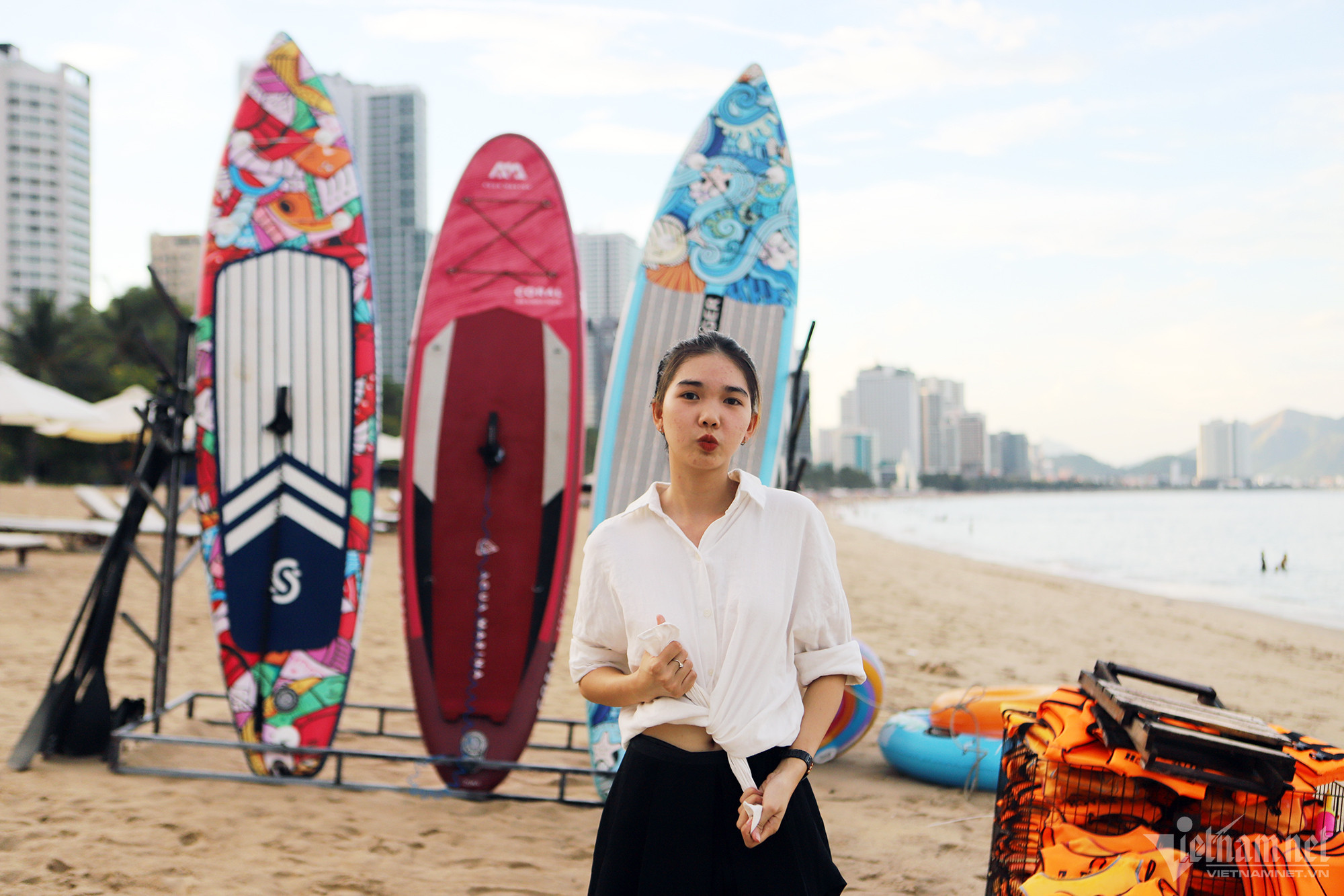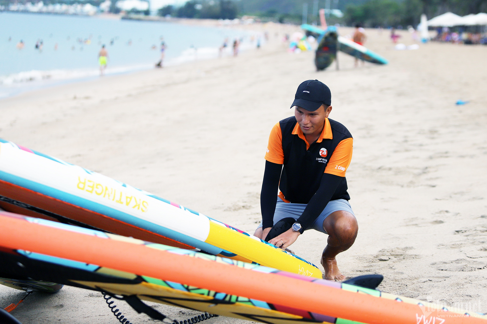 Hoang Anh, 32, is a SUP coach with many years of experience. He helps tourists to check life jackets and the boat.