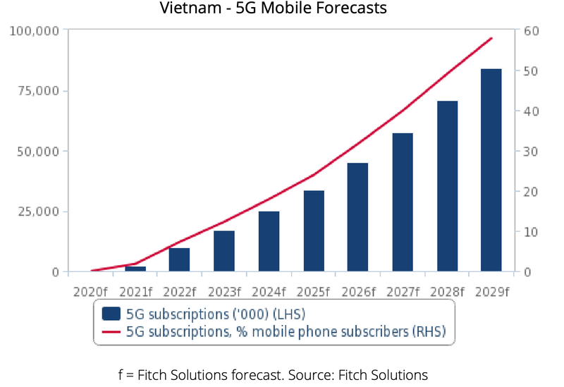 The wider availability of low-cost 5G devices in Vietnam will support uptake, primarily among cost-conscious consumers. In terms of industry applications, Fitch expected to see strong use of 5G in the manufacturing sector.