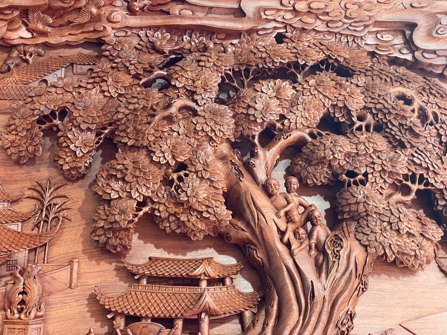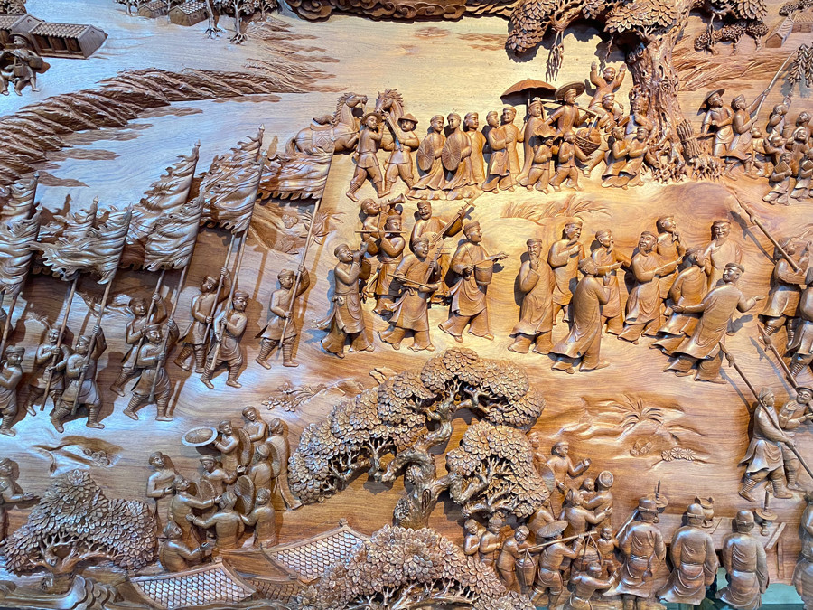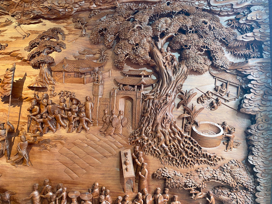 The picture has up to 348 characters, 68 trees and clusters of trees, in addition to many details such as fan flags, hammocks, spears. The painting was made within 27 months, with the participation of 10 skilled craftsmen in many different stages.