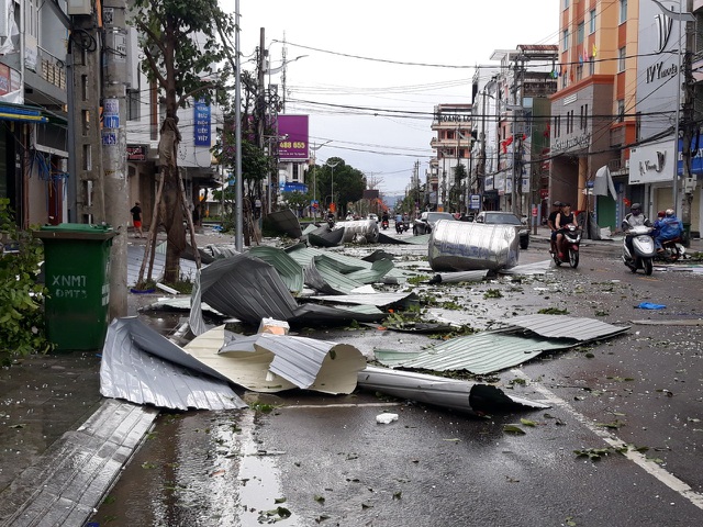 In Quang Ngai and Quang Nam, and Phu Yen provinces, strong wind together with heavy rains threw house roofs and uprooted trees. Many areas saw widespread power outages and telephone line cuts.