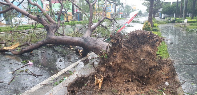 A tree is uprooted in Phu Yen Province