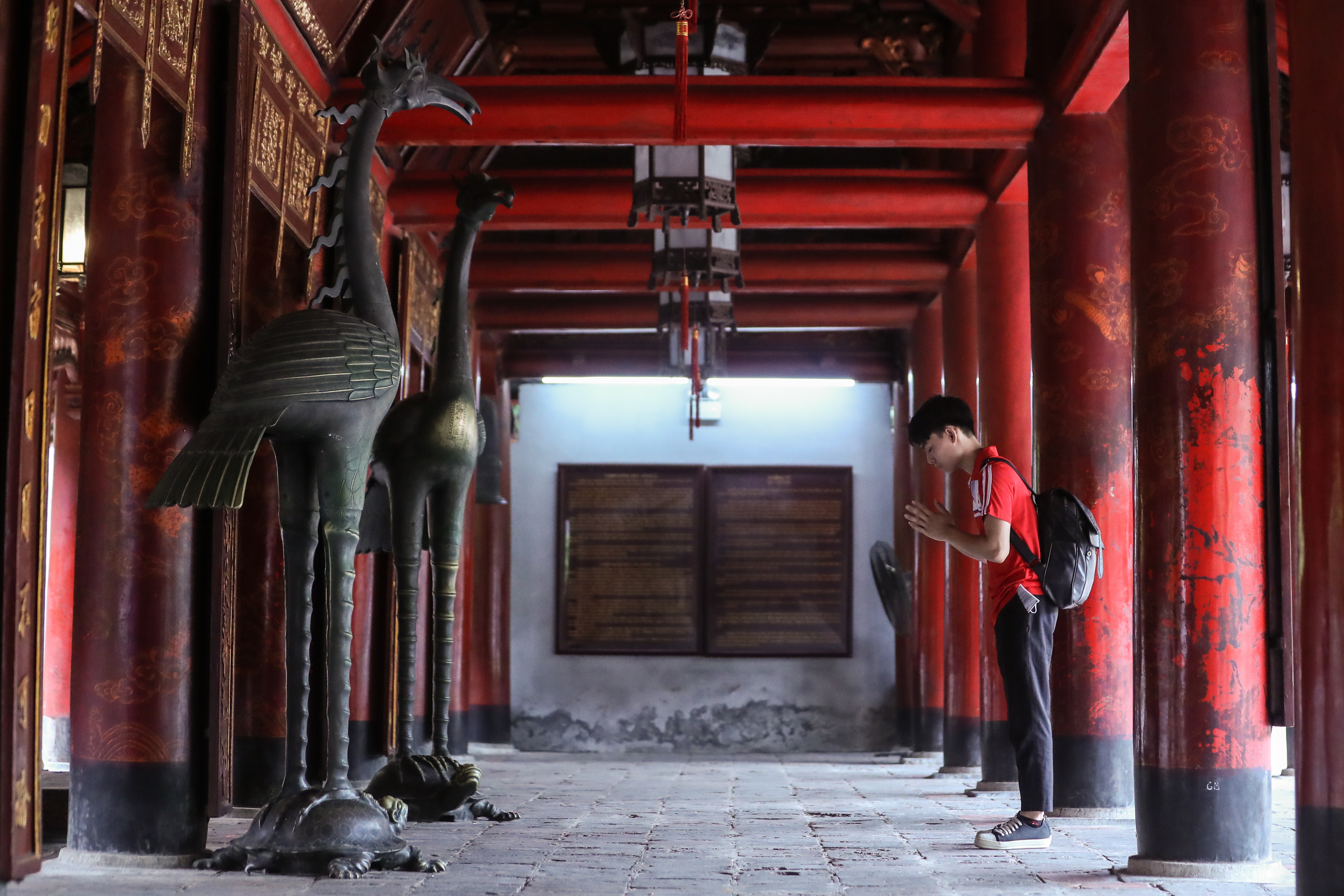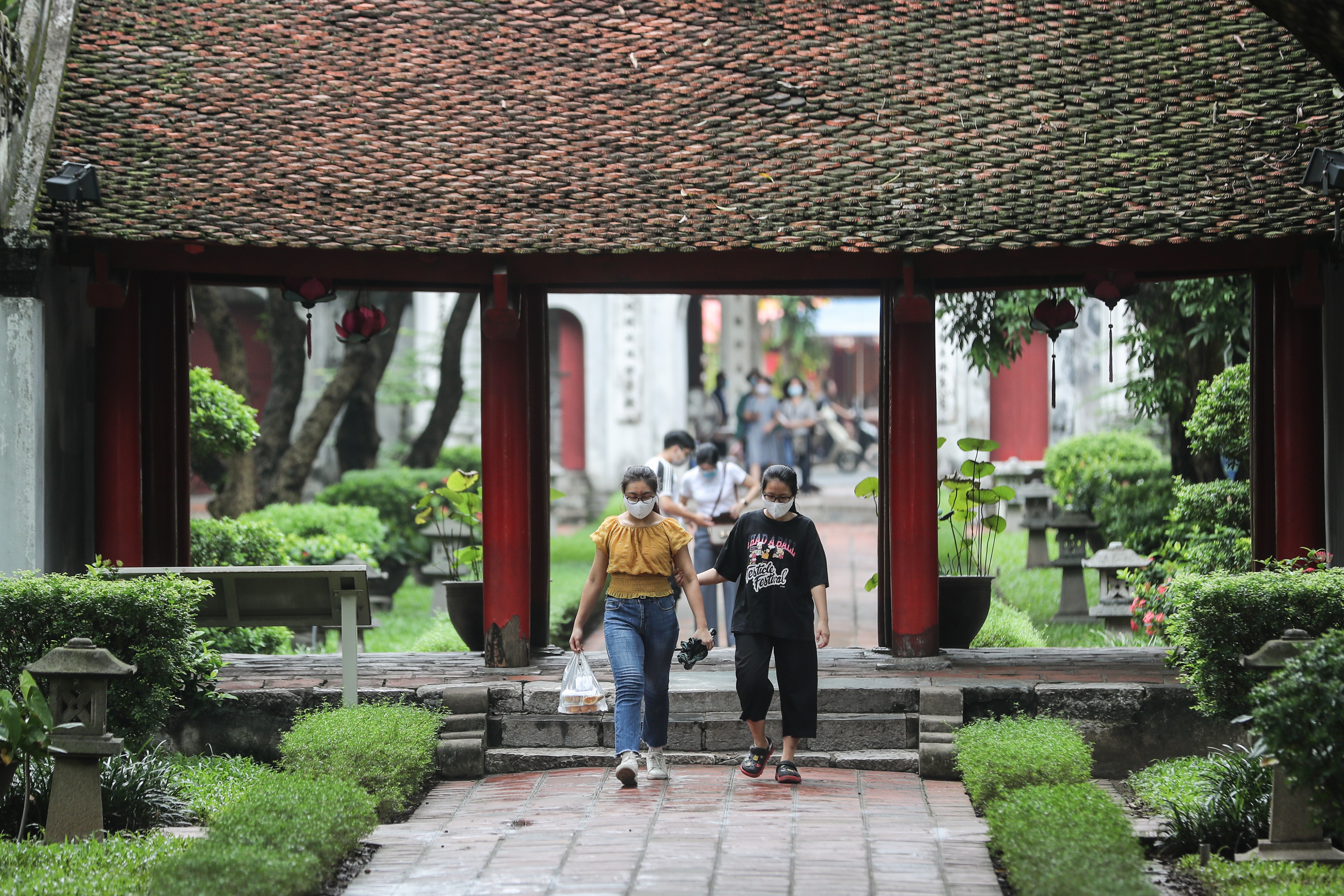 The number of students coming to the Temple of Literature to pray for good exam results has dropped sharply compared to the previous years,. On the morning of August 5, the managing board of the Temple of Literature disinfected the whole place. Visitors coming to the temple had a body temperature check, were asked to wear face masks and to wash their hands.