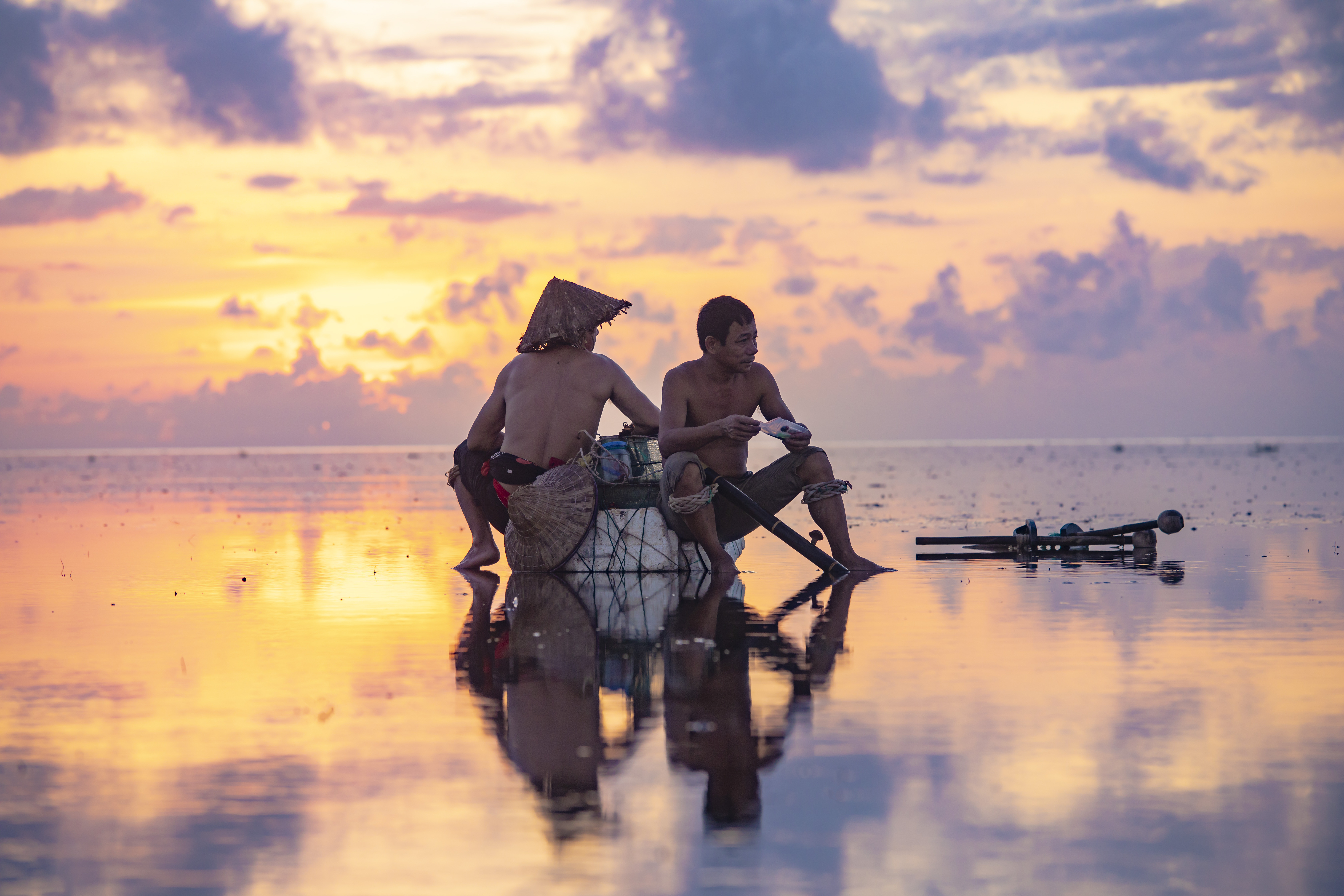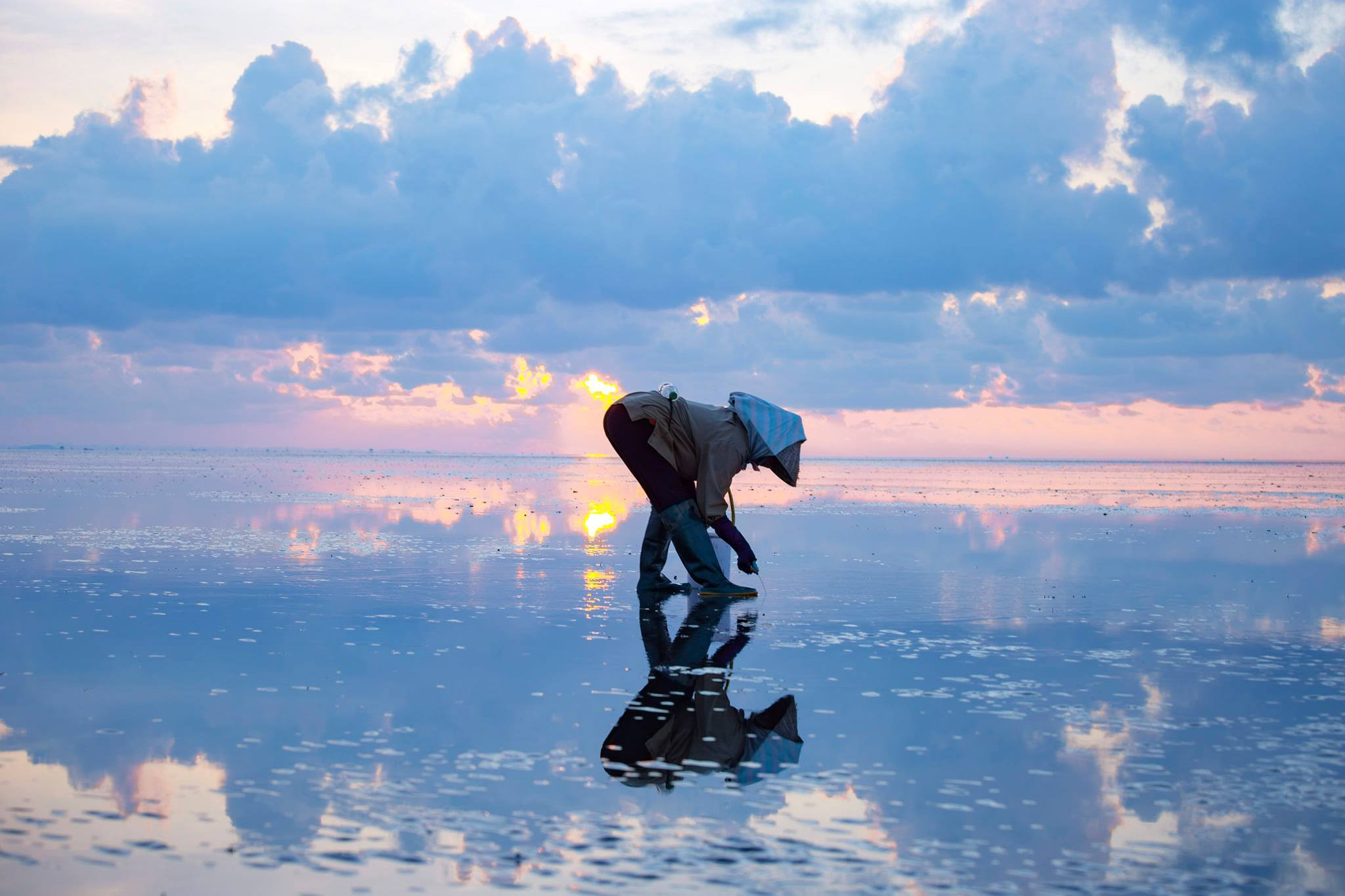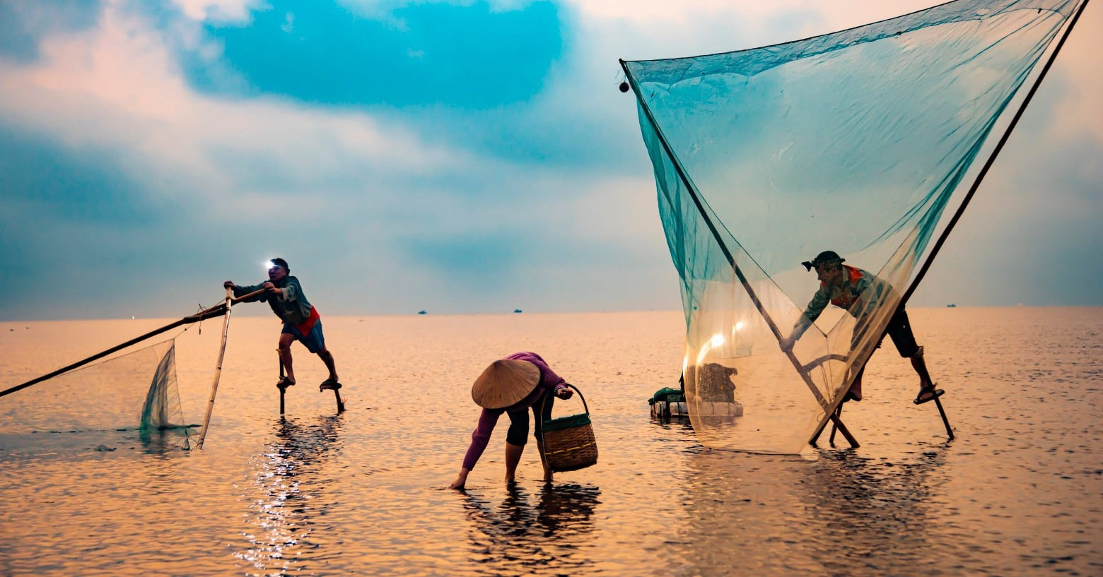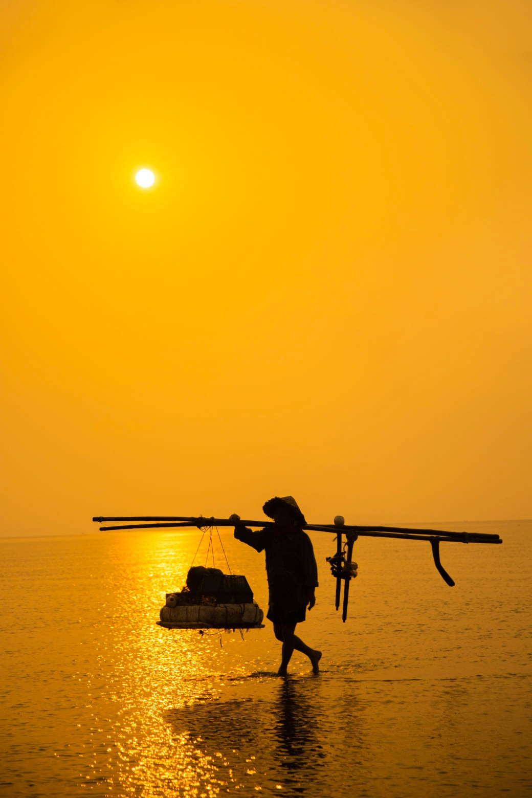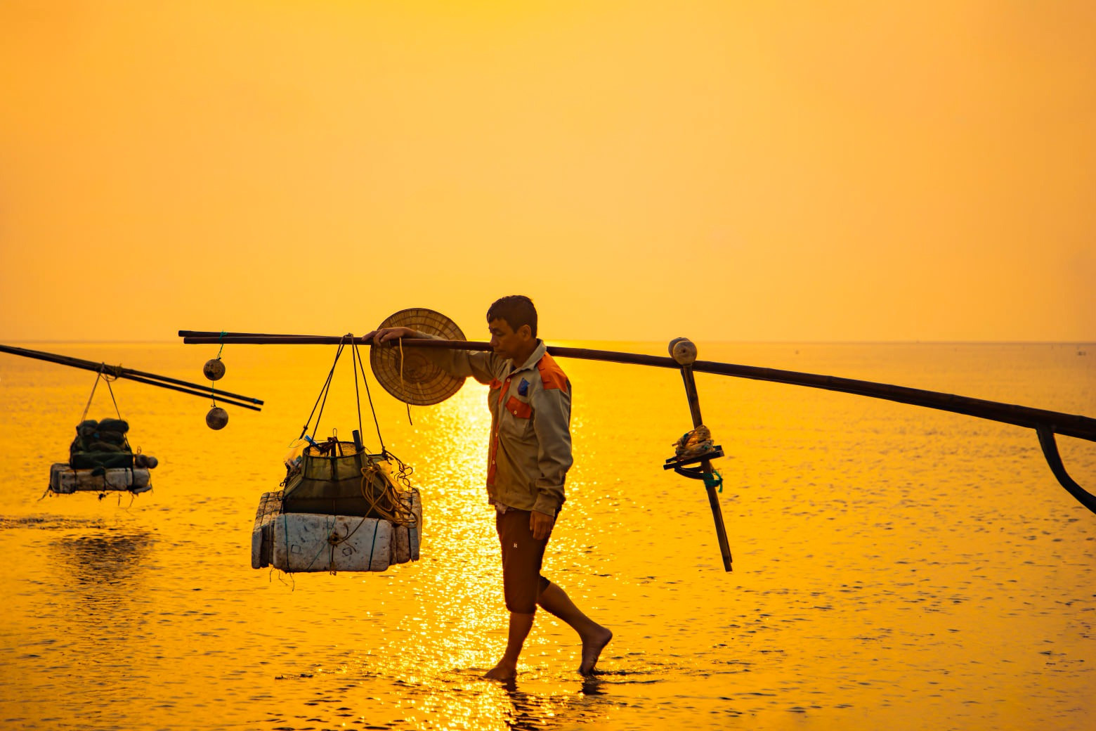 The photos capture the livelihood of coastal fishermen from the early morning, when the sun rises, creating a beautiful, surreal scene.