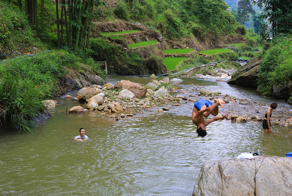 ... or climbing upstream and immersing themselves in the cooling water of numerous beautiful small streams pouring down from the mountains to Muong Hoa.