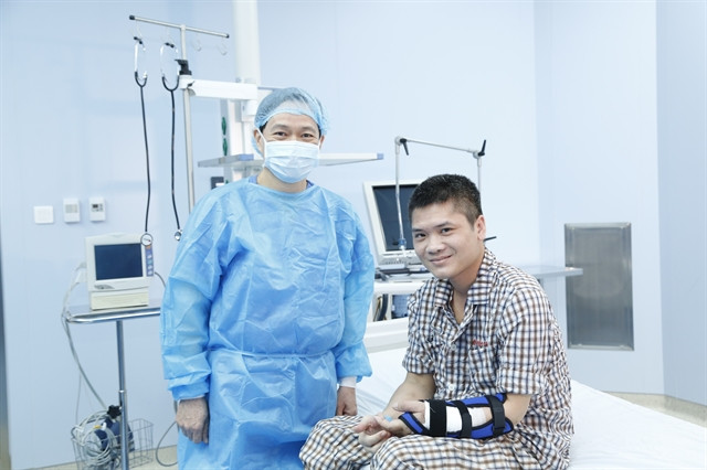| Dr Nguyễn Thế Hoàng takes a photo with the first limb transplant patient in Việt Nam. |