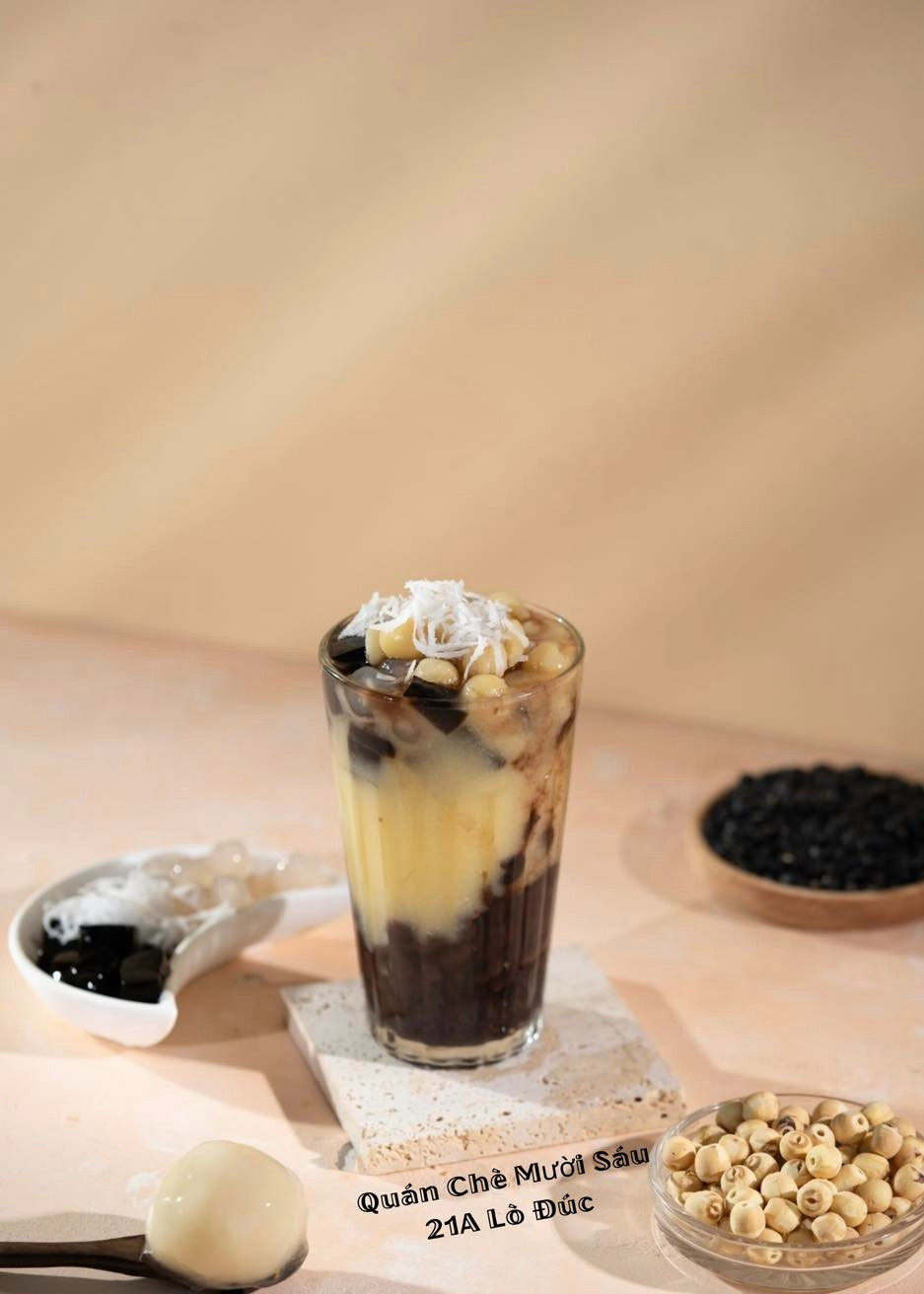 Recently, the shop has added more contemporary offerings to its menu, including almond jelly with fruit, yogurt with jackfruit, black sticky rice yogurt, and snacks like fried fermented pork rolls, fries, and cheese sticks. Prices start from USD 1.