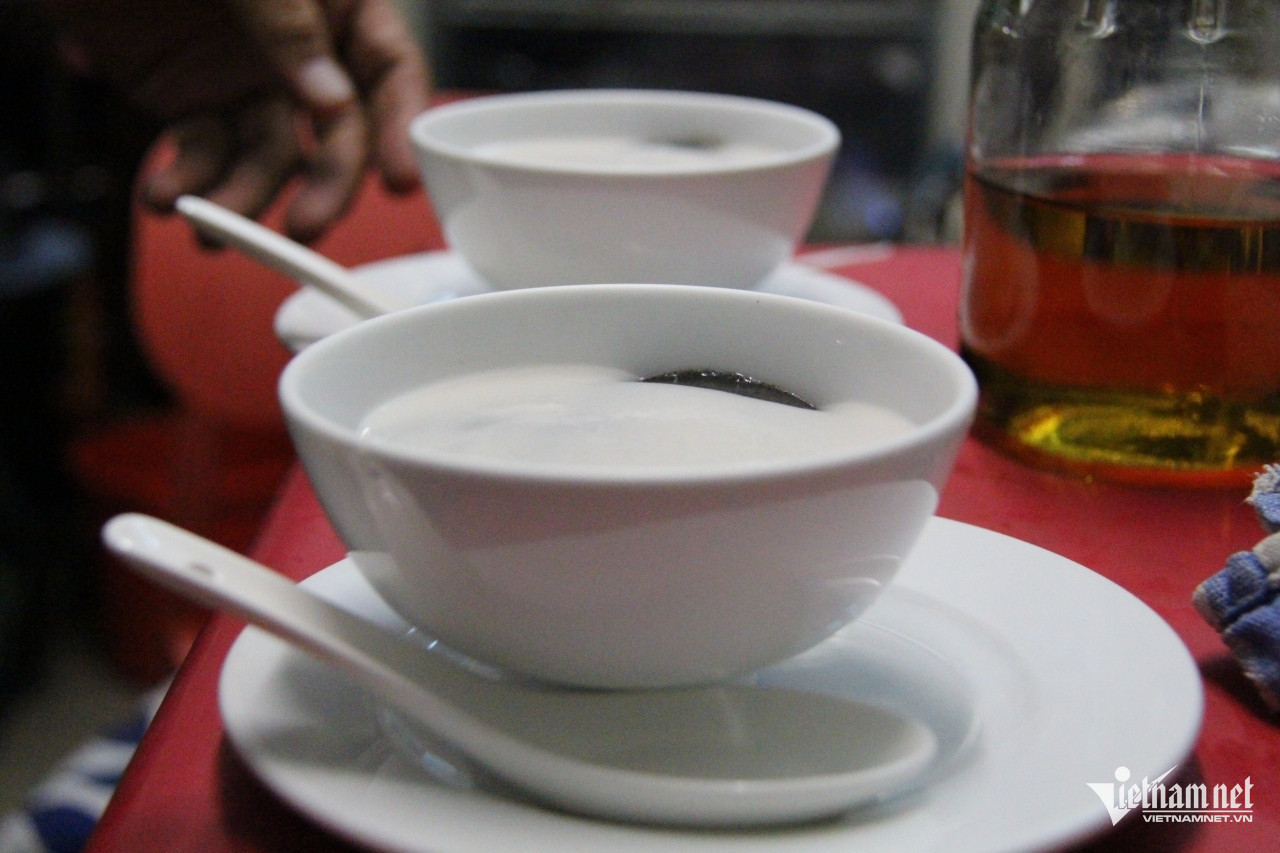 Made from black sesame, glutinous rice flour, and regular rice flour, Mr. Cuong’s dessert is smooth and creamy. It has a delicate sweetness, creamy texture, and an intriguing, delicious taste.