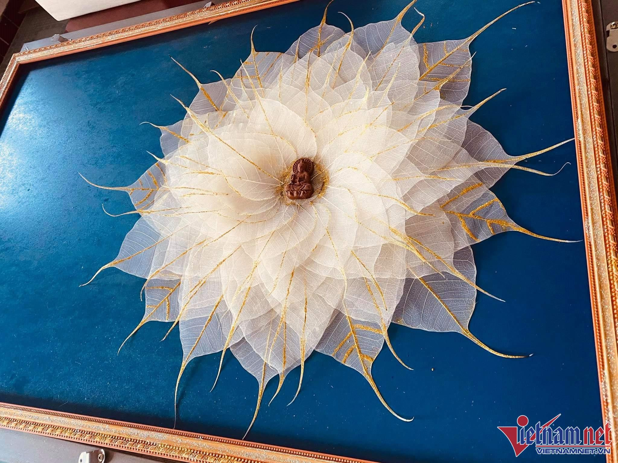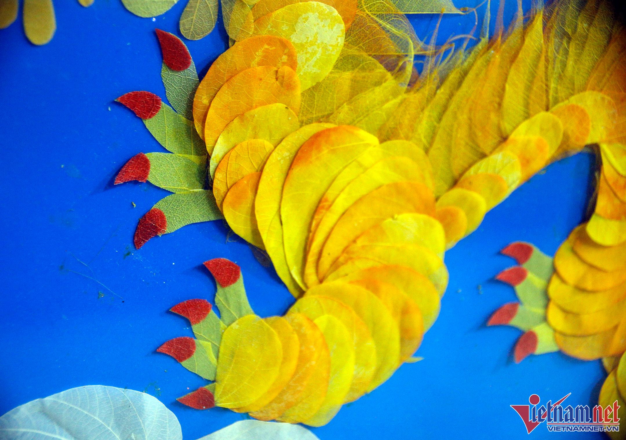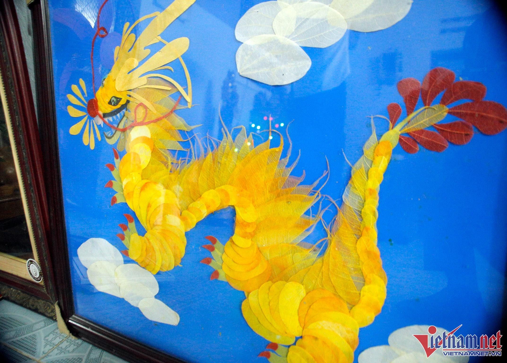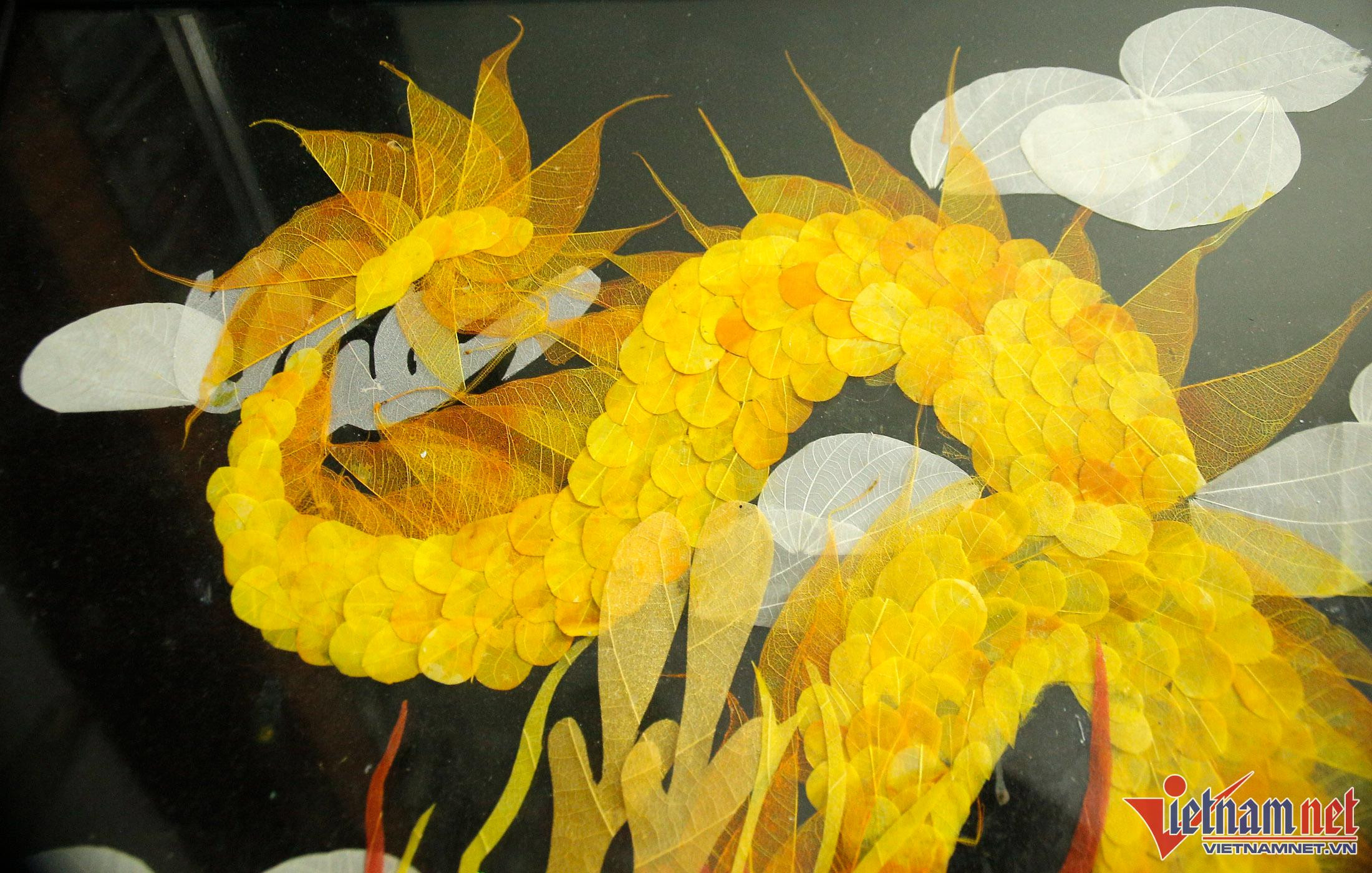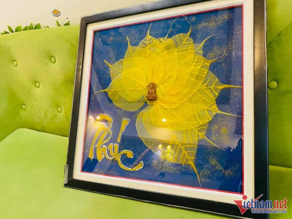 Teacher Sinh said that because these pieces are entirely handcrafted by her, it is sometimes difficult to keep up with demand. The challenge in each product is thinking of where to put the dried leaves - for example, white leaves will produce clouds and Bodhi leaves with pointed tails will be utilized as dragon or bird feathers.