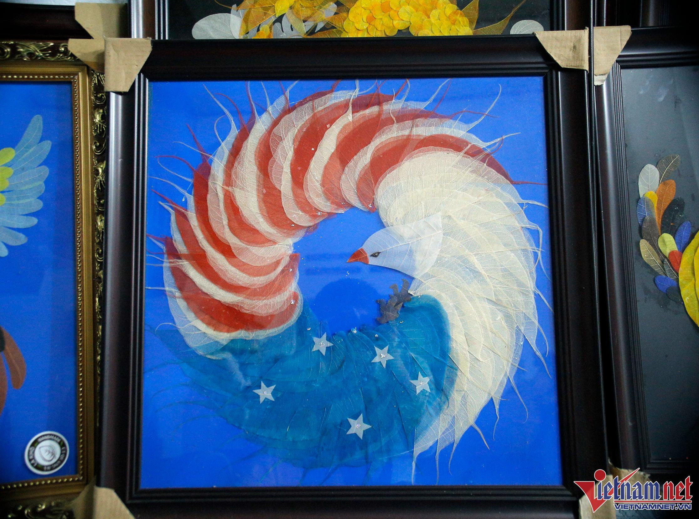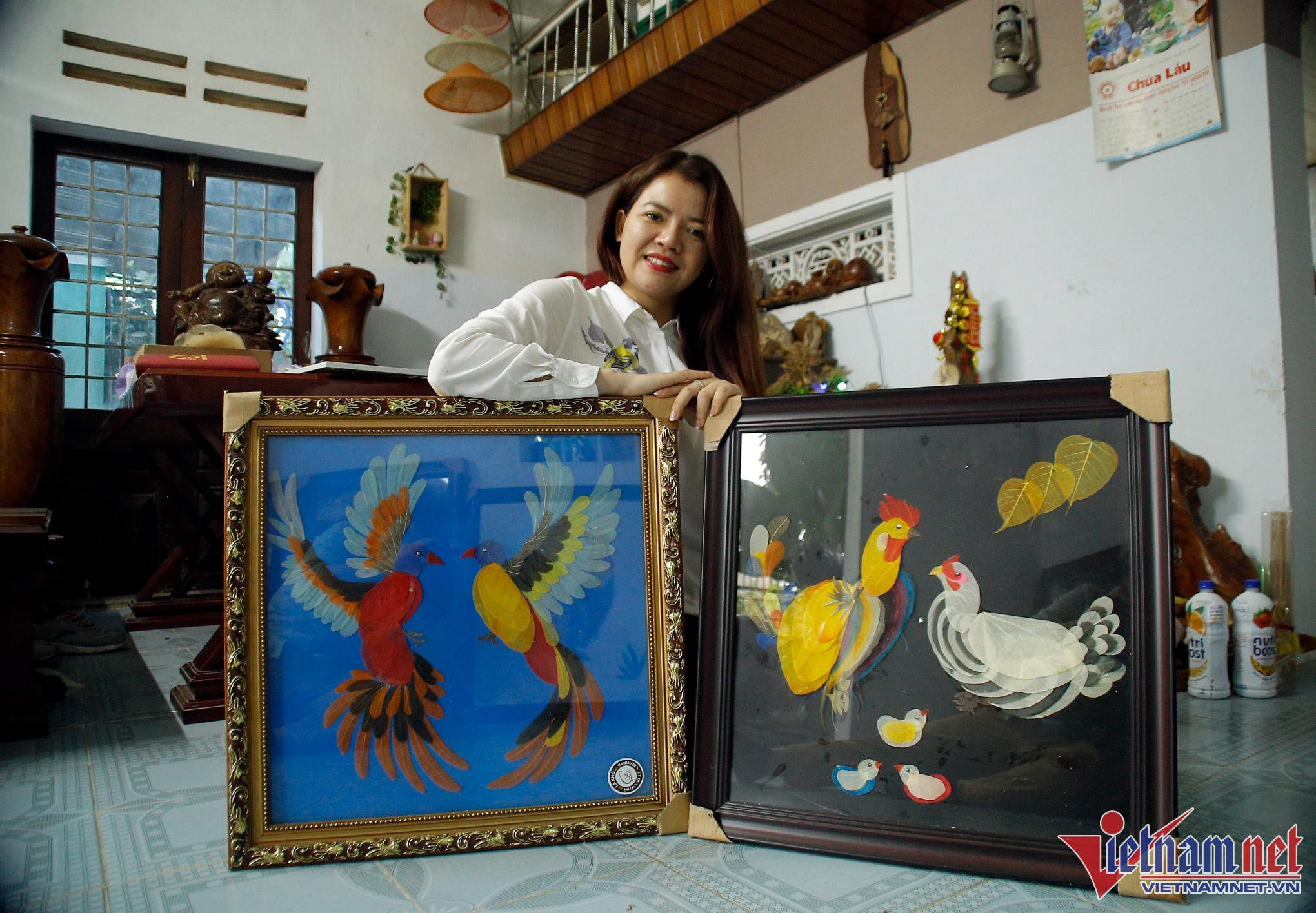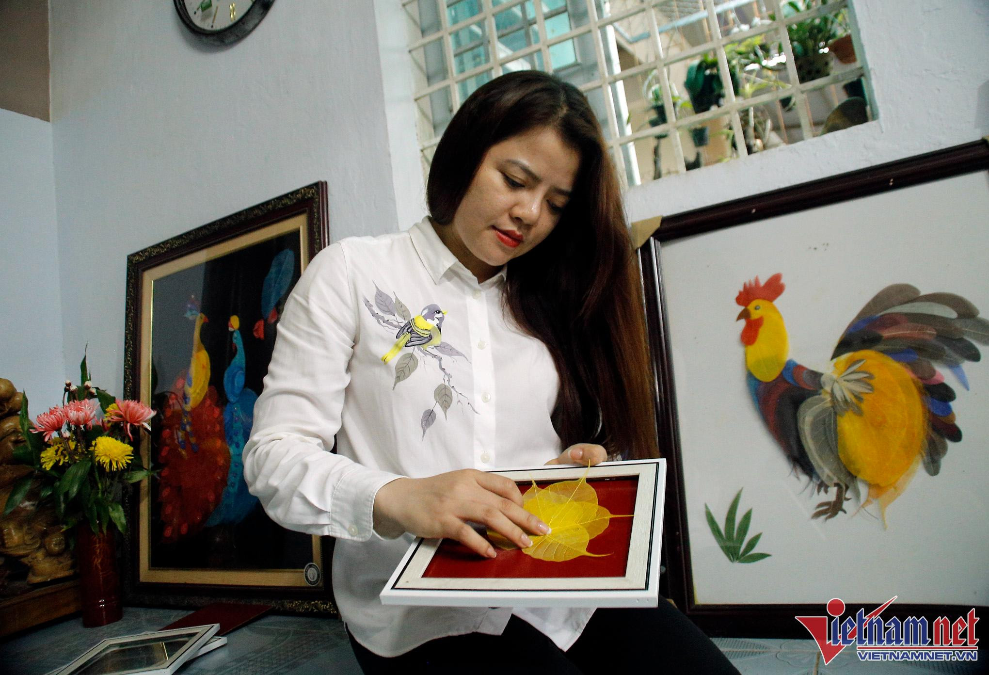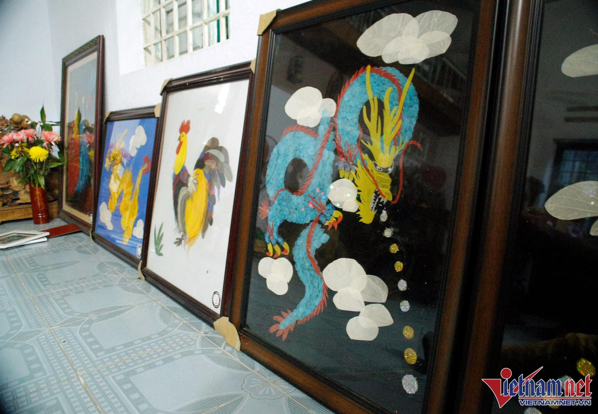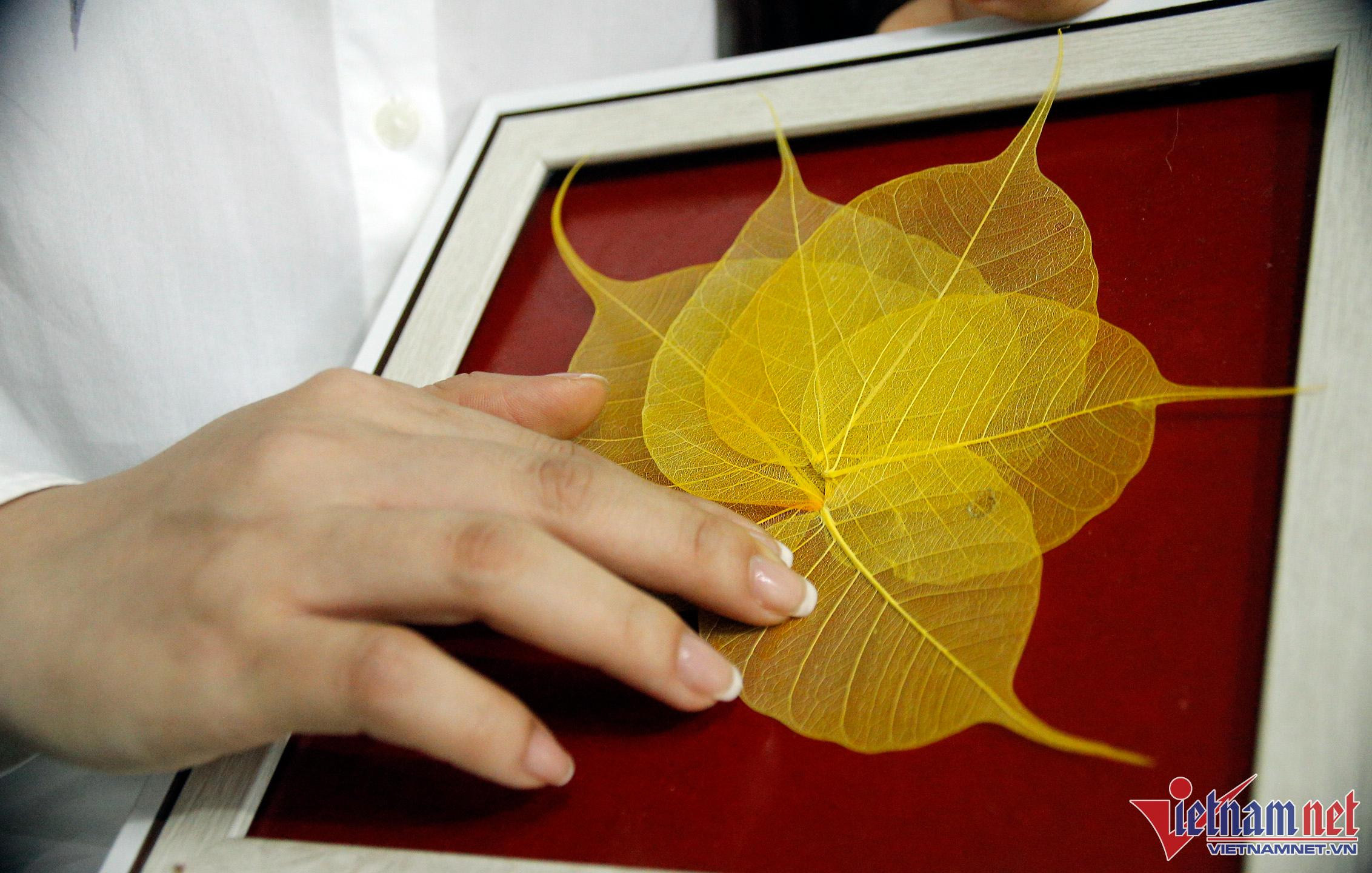 Teacher Sinh said that because these pieces are entirely handcrafted by her, it is sometimes difficult to keep up with demand. The challenge in each product is thinking of where to put the dried leaves - for example, white leaves will produce clouds and Bodhi leaves with pointed tails will be utilized as dragon or bird feathers.