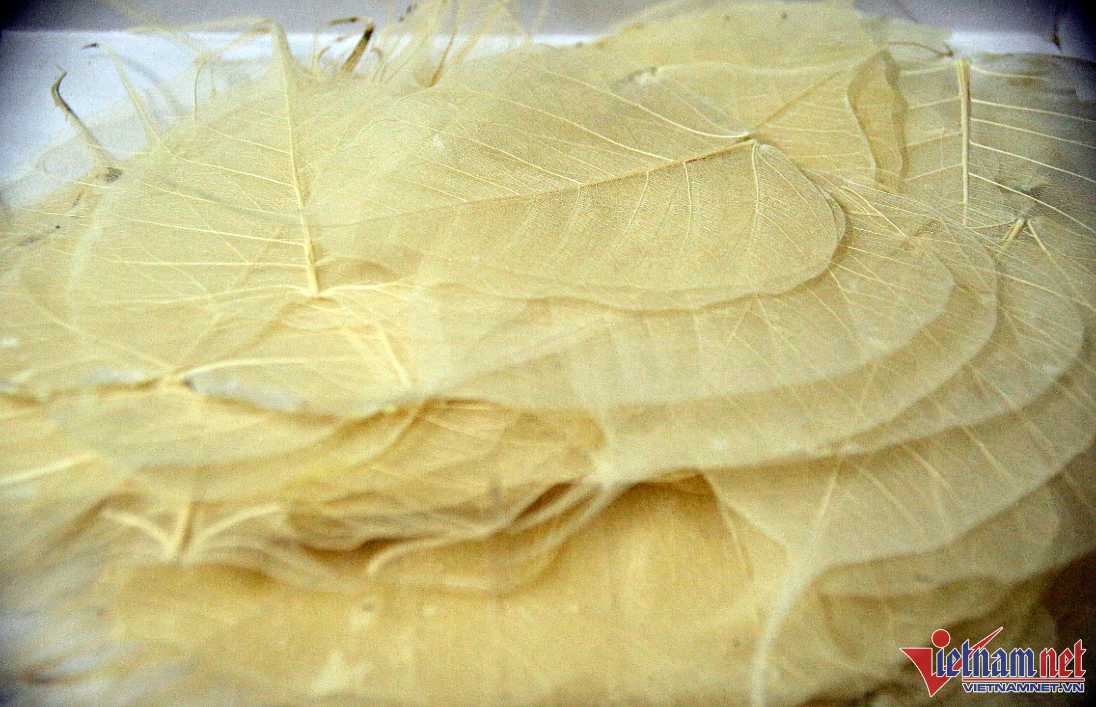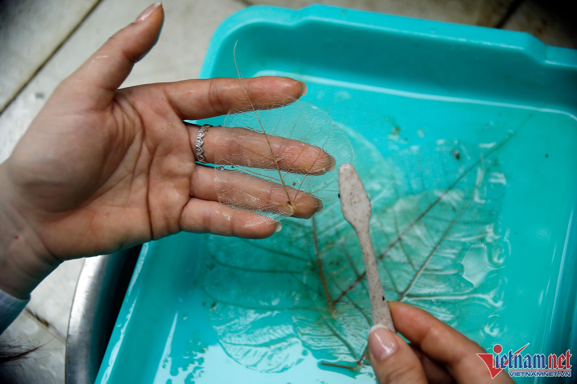 Difficulties arose as she approached to soak the leaves, cleaning the leaves to produce the original leaves with just veins remaining. Ms. Sinh will wash and immerse the leaves in a tank after picking them, soaking them for approximately a month with biological products, where the chlorophyll rots.