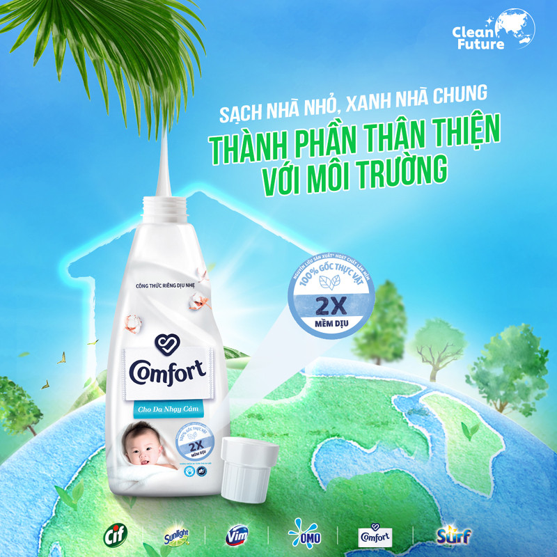 Several Unilever Vietnam’s Home Care products currently have bottles made from PCR plastic, including: Omo Matic Top Load Liquid Laundry Detergent bottle with 50% PCR; bottles of Comfort for sensitive skin, Sunlight Gentle dishwashing liquid, Sunlight Lemon 100, Natural Sunlight floor cleaner, Cif Nature, Lifebuoy floor cleaner, and blue Vim toilet cleaner all with 100% PCR.