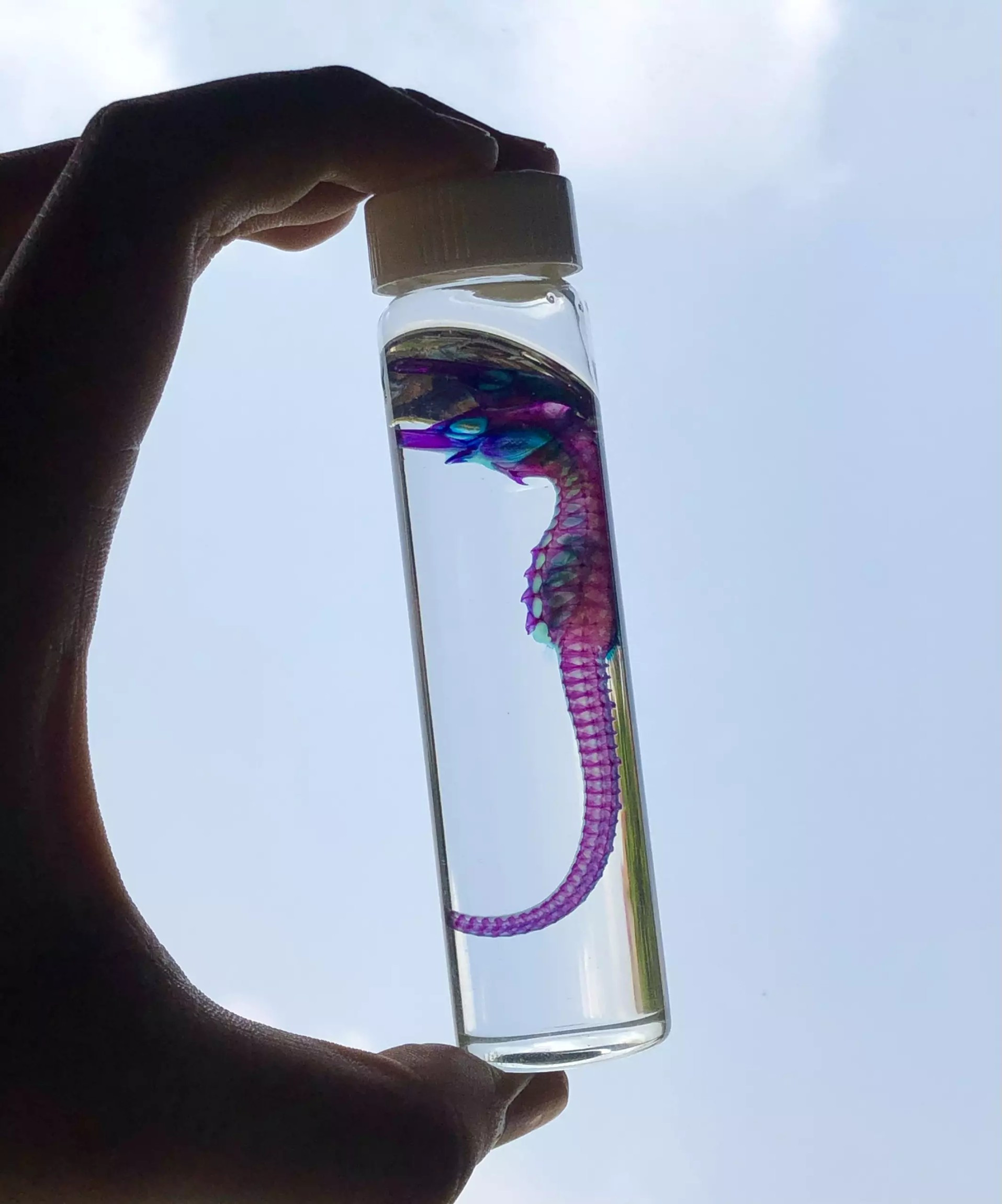 “I felt curious about the diaphonized specimen I saw on the internet, so I decided to learn about this strange subject. I felt so sorry to see animals die. I wanted to enhance the beauty of death and make every dead body have a specific beauty. I believe that animals will be happier as their bodies can be done this way, rather than have their bodies thrown away,” Duy said about the staining technique used on animal specimens.