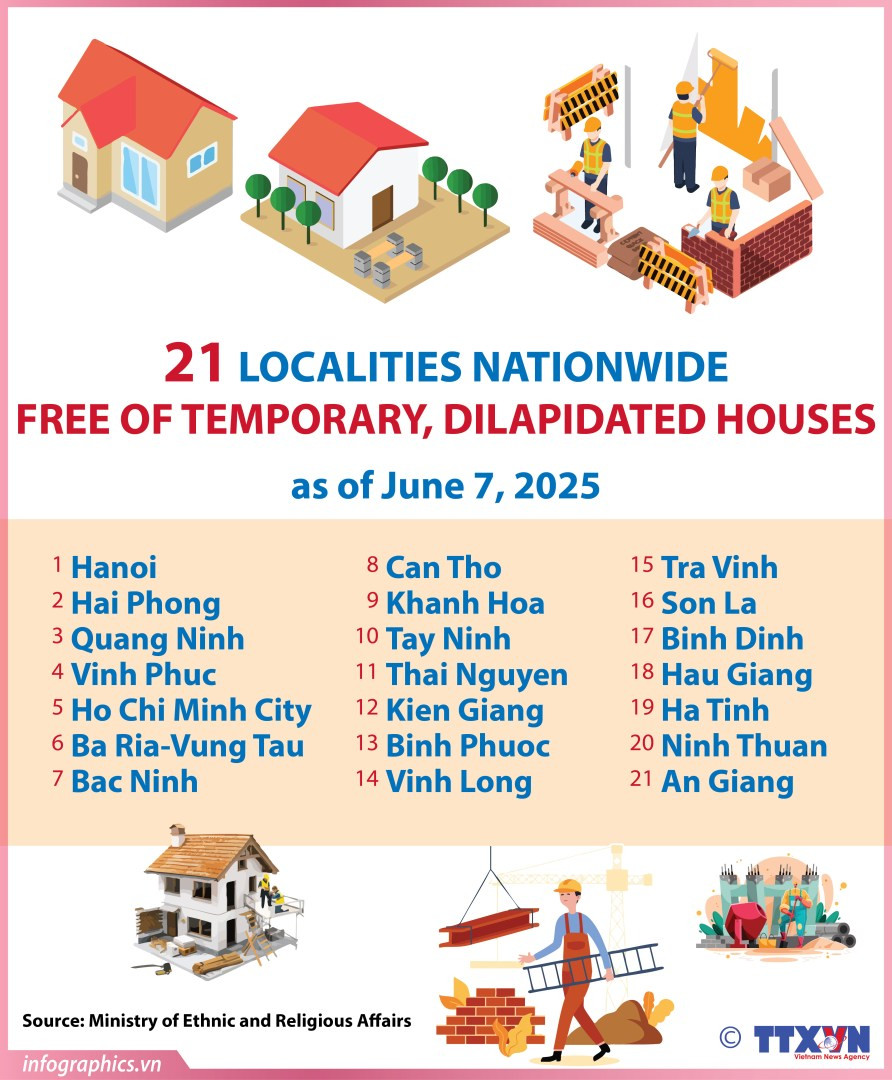 According to statistics from the Ministry of Ethnic and Religious Affairs, as of June 7, 21 localities nationwide had achieved the goal of eliminating makeshift and dilapidated houses.