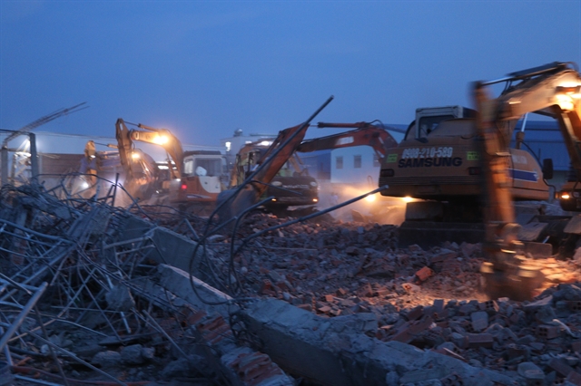 Rescue forces search for victims after the wall at the construction site in Dong Nai Province collapsed yesterday.
