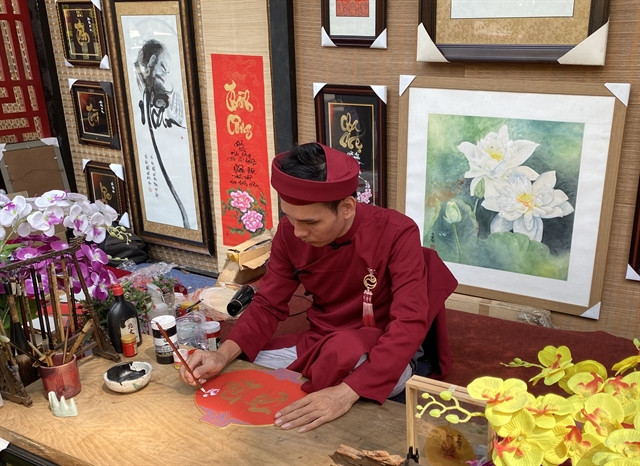 Trần Ngọc Quyên, a resident of Thủ Đức City, said, “I visit the festival every year to take beautiful photos with my family and friends. I often buy calligraphy to get luck for the new year.”