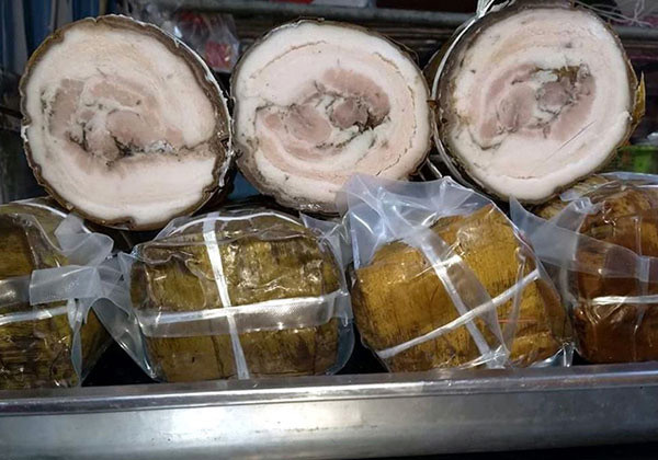 Thai Binh Province is not only known far and wide for its bánh cáy (traditional cáy cakes) but also giò nây made of pork belly wrapped in banana leaves.