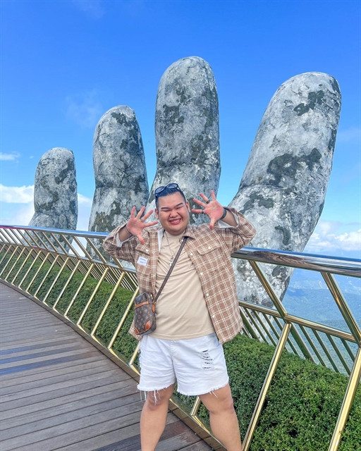 | Turk is pictured on the Golden Bridge, a tourist attraction in Đà Nẵng City. — Photo courtesy of Turk |