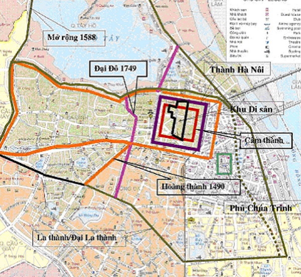 ![]() The map of the relic site in the imperial Thang Long – Hanoi. |