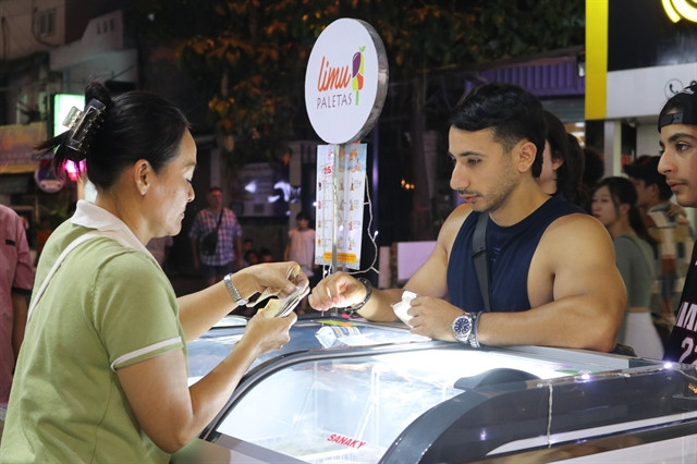 | A foreigner stop by a ice cream stall at the Thảo Điền Night Street. VNS Photo Xuân Đăng |