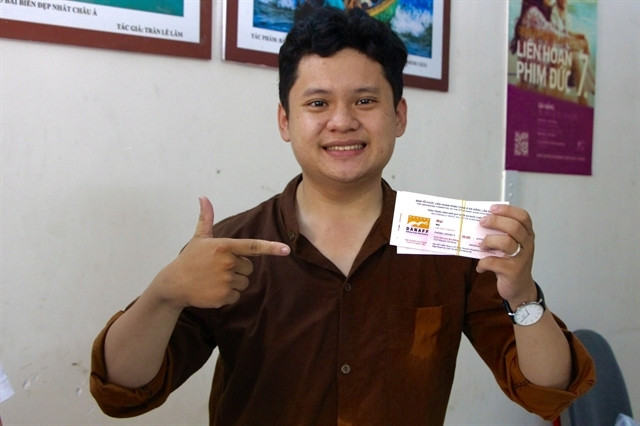 A young local is excited to receive tickets for the free movie screening programme around the city. Photo courtesy of Anh Vũ/DANAFF