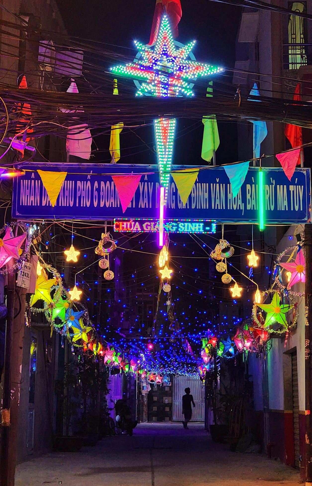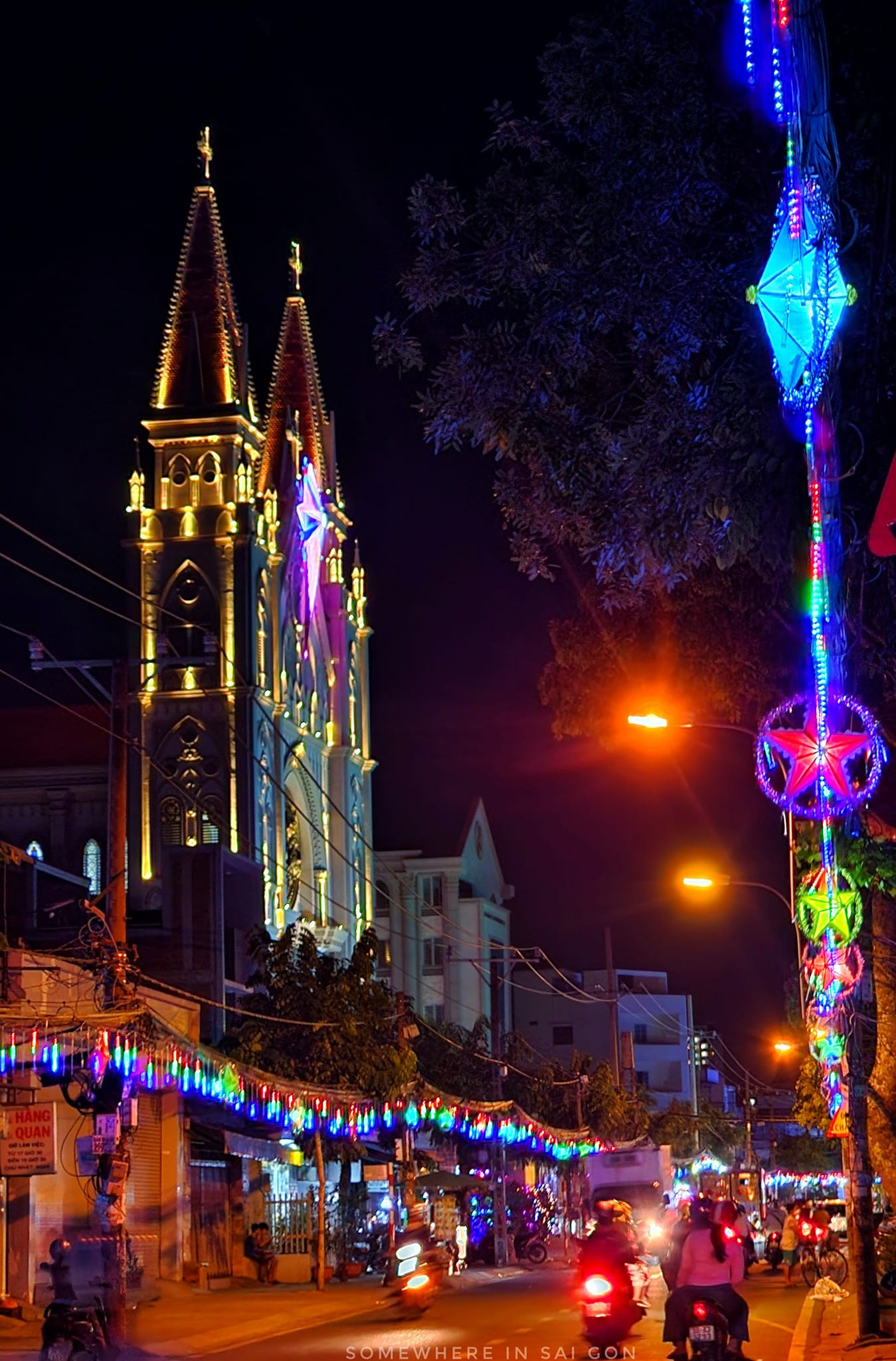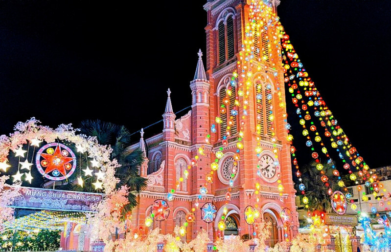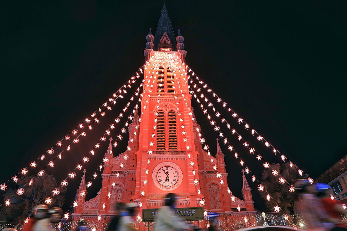 Tan Dinh Church, located at 289 Hai Ba Trung, Ward 8, District 3, Ho Chi Minh City, is a famous church built in colonial times. Every Christmas season, Tan Dinh Church is always shimmering with many lights and pine trees, attracting many visitors to take pictures to celebrate Christmas.It is not a long street but every time it comes to Christmas, the Pham The Hien religious area in District 8 is crowded with visitors because the Christmas atmosphere covers the whole area. All houses in the area are decorated to celebrate Christmas.Shopping centers are also a perfect choice for Christmas.Aeon Mall, Diamond Plaza, and Crescent Mall are prominent names that attract a large number of visitors.In recent days, large cafes decorated with Christmas themes have always been full.