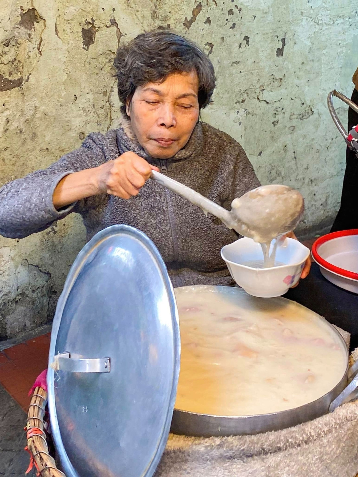 On Quan Thanh Street, this spot is known for its velvety porridge, fragrant with the aroma of ground rice.