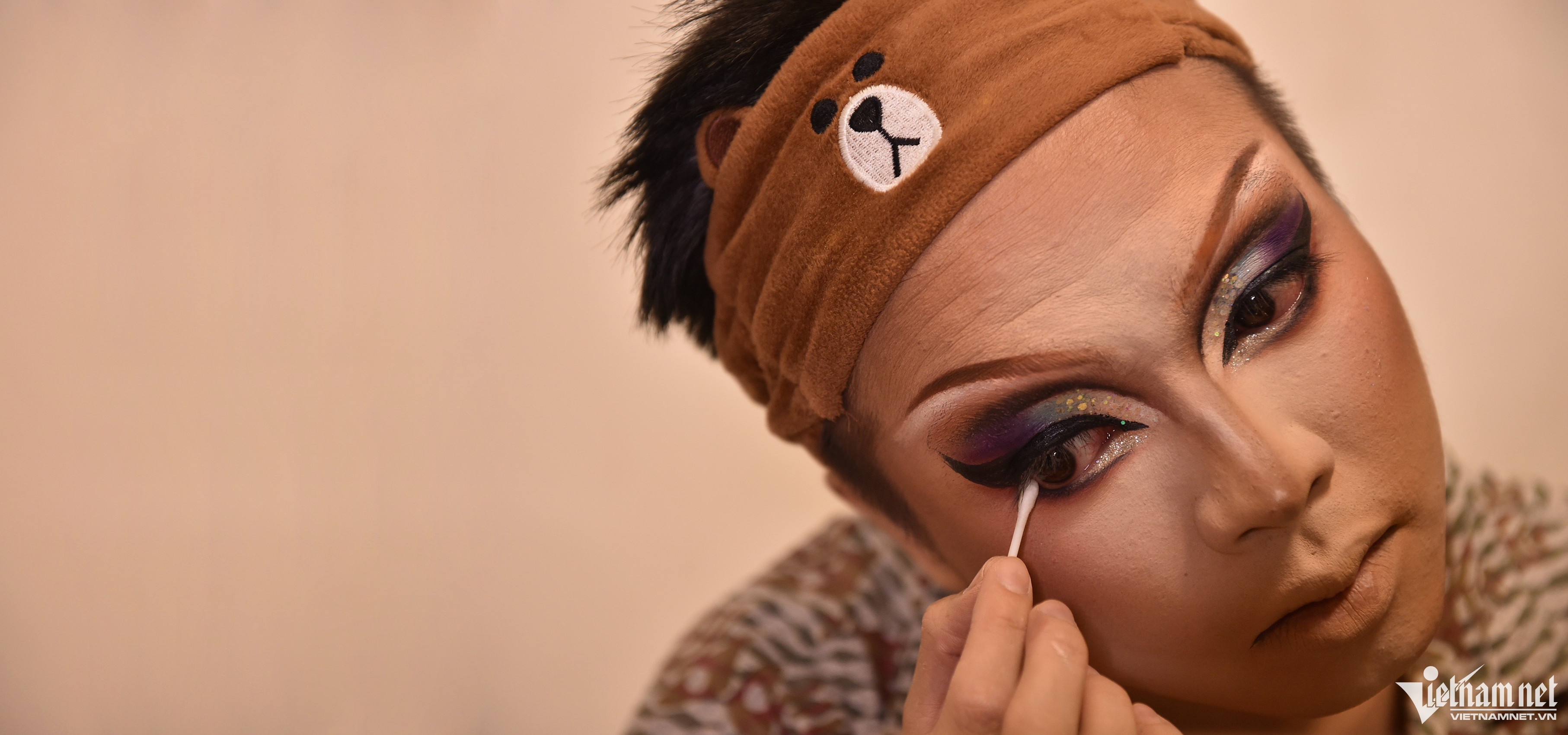 Le Hai Phong, 24, a communications officer working at the Vietnam Tennis Federation, has been a drag queen performer for the past 3 years. Drag queen is a special performing arts, popular among the gay, bisexual and transgender (LGBT) community. Photo: Mr. Nguyen.