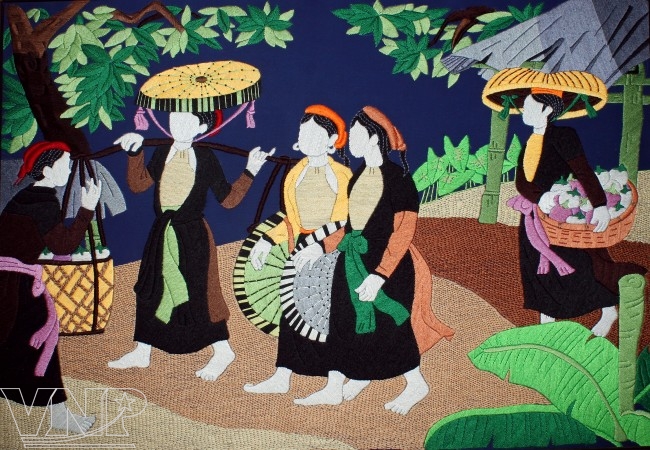 ![]() Wool embroidered paintings with the themes of Dong Ho folk painting. ![]() "Early Fruits". ![]() "Relaxing". ![]() "Beauty of the Highlands". ![]() "Waking up". ![]() "Mountain Girls in the Bamboo Forest". ![]() "Fairy Space". ![]() "Singing in Hamlet". ![]() "Music in the Forest". |