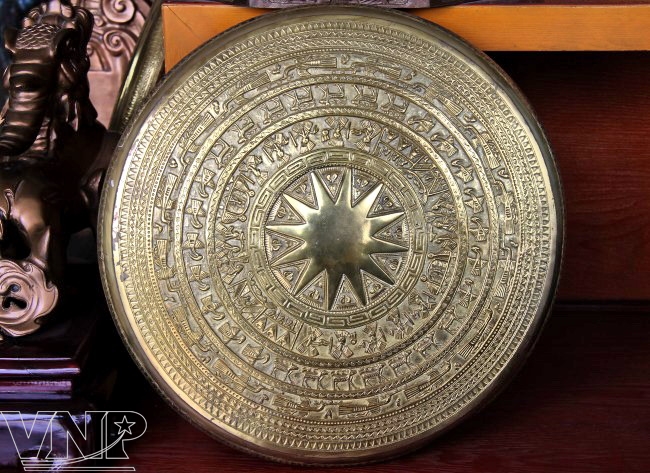 ![]() Patterns on a bronze drum. ![]() A statue of rhinoceros made from bronze. ![]() A shop selling Tong Xa bronze products in Lam Town. |