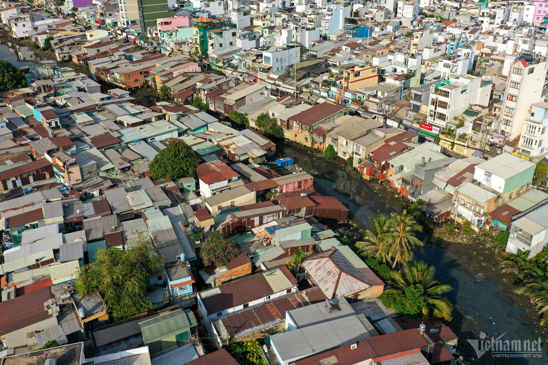 An overview of the "slum" area along the Van Thanh Canal, Binh Thanh District.
