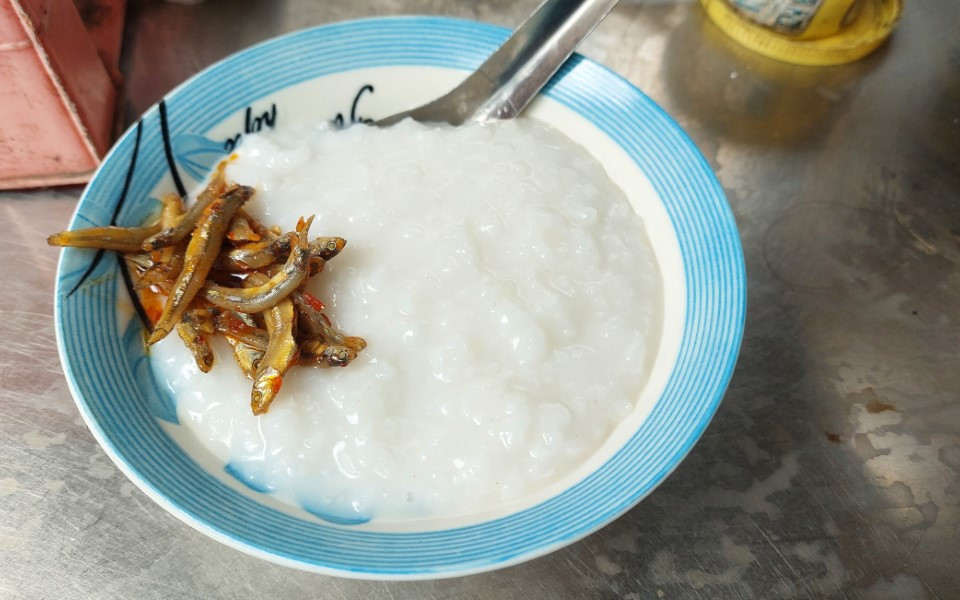 Enjoying a spoon of porridge with braised anchovies creates a lasting impression as the coconut flavor gently melts in diners’ mouths.