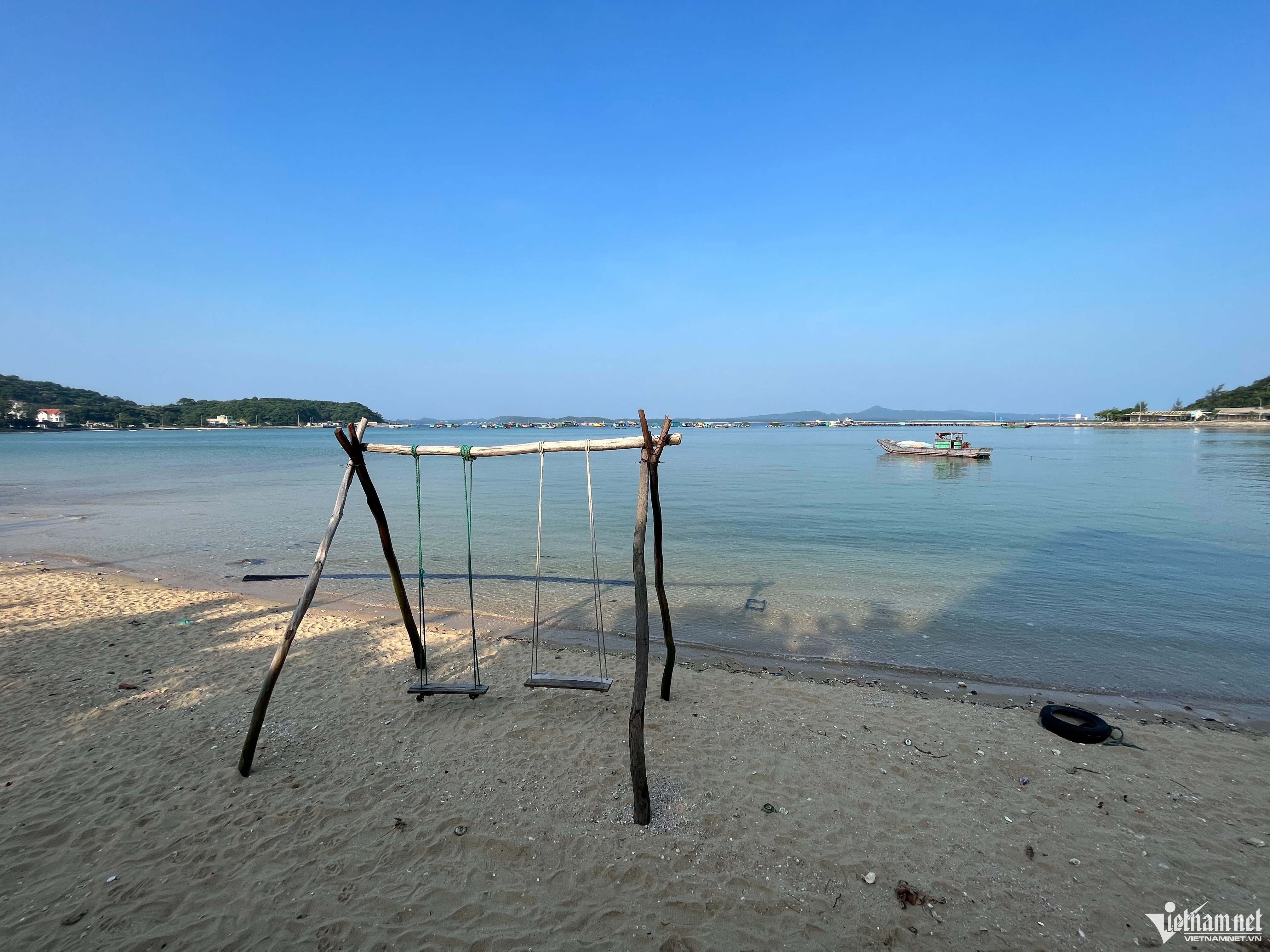 Hon 7 Sao Co To is endowed by nature with unique terrain and diverse resources. Its sandy roads wind in the middle of the sea. When the tide recedes, these roads appear, connecting the islands. Visitors can experience the feeling of leisurely walking on the fine sand, or when the sea water has not yet receded, feel the cool water and watch the sea snails groping for food at their feet.