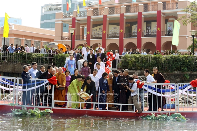 The State President joined in the ritual to release carp into the Tau Hu Canal which is a traditional custom for the worship of the Kitchen Gods, with best wishes for a prosperous life and the country’s strong development and global integration.