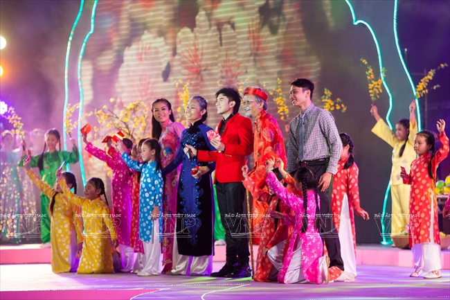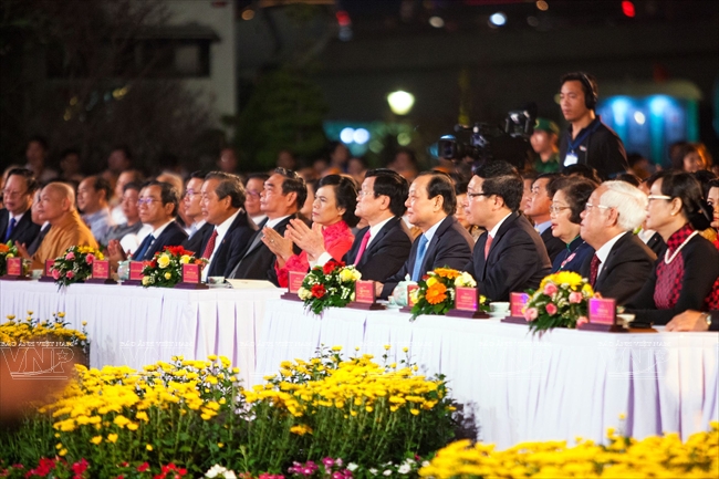 On the evening of February 8, at Nha Rong Wharf, President Truong Tan Sang and leaders of the Vietnamese Party and State, ministries and local agencies, and more than 1,000 Viet Kieu enjoyed watching an artistic performance titled, “The Homeland Spring– Glorified Nation 2015”.