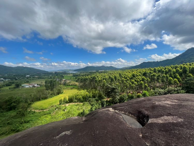 Lying at the foot of Chu Yang Sin Range, the rock has a length of about 200 meters and is over 30 meters in height, covering an area of thousands of square meters. It takes tourists about 15 minutes to get to the peak of Mother Elephant Rock. Standing on top of the rock, tourists can see a panoramic view of majestic scenic spots such as Yang Reh Lake and Chu Yang Sin Range – the roof of the Central Highlands.