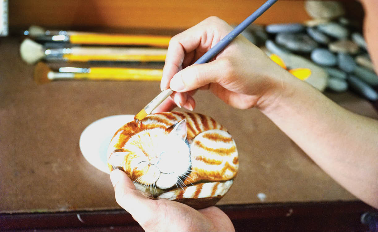 Graduating from the University of Arts in Hue City, Thanh chose to make murals and decorations for coffee shops and restaurants around the city to earn his living. Three years ago, when wandering along a stream full of pebbles with his friends, an idea suddenly came to him: to draw paintings on such beautiful pebbles.