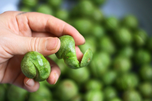 Phuong said she cleans the fruit, gets rid of the outer cover, and makes a deep cut on the fruit to create a spiral, but does not cut the fruit off the seed.
