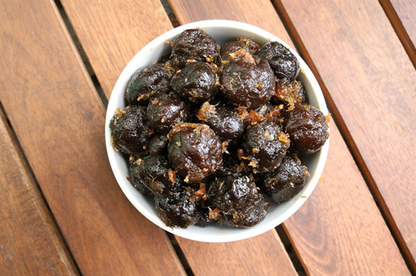 Simple ingredients are used for this significant delicacy of Hanoi. This recipe can be applied widely: 500 grams of dracontomelon; 400 grams of sugar; 30 grams of ginger and 10 gram of salt.