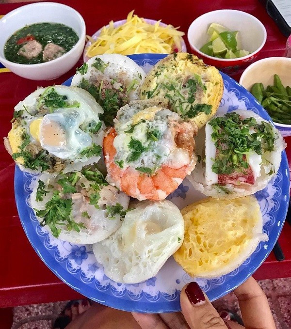 Quy Nhon's most famous dishes are lagu bread, shrimp rolls, shrimp pancakes, it cakes, and grilled spring rolls.