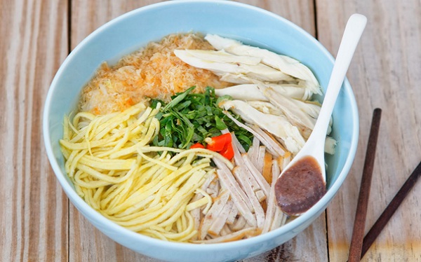 It is also a particularly attractive Hanoi dish as the noodles, chicken, eggs, pork slices, and a dollop of shrimp paste are carefully arranged to resemble a flower.