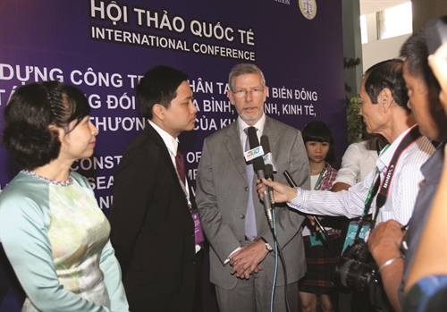 | Prof. Dr. Erik Franckx, an arbiter of the Hague Permanent Court of Arbitration, talks to journalists at an international conference in Ho Chi Minh City __Photo: Thanh Vu/VNA |